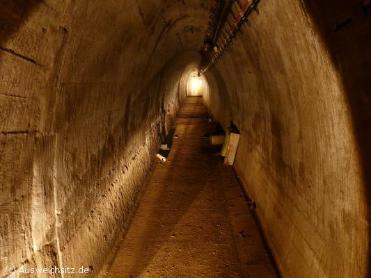 Die letzten Meter des Fluchtstollens (Bauwerk 185 und 186). Nach einem Linksknick folgen weitere 20 Meter, dann . . .