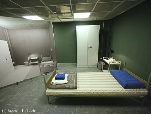 Kurz vor dem Ende des Museumsbereichs ein Highlight der Dokumentationsstätte: Das nachträglich wieder aufgebaute Schlafzimmer des Bundespräsidenten (aus dem Bauwerk 22).