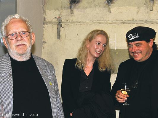 Jacques Berndorf (Michael Preute) mit Heike Hollunder (Leiterin der Dokumentationsstätte Regierungsbunker) und Christian Willisohn (v.l.; am 23.8.2008 zur musikalischen Lesung als erster kultureller Veranstaltung in der Dokumentationsstätte Regierungsbunker).