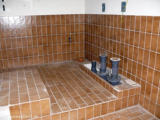 Quelle versiegt: Raum der Wasseraufbereitung ohne Technik, in dem nur noch die Zuläufe von vier Tiefbrunnen aus dem Fußboden ragen.