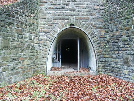 Unscheinbar. Wie auch der Haupteingang wirkt der Notausgang des Postbunkers eher unscheinbar und liegt an einem kleinen Versorgungsweg, knapp 300 Meter entfernt von den ersten Häusern Staffels und vom Ort uneinsehbar in einer Nische.