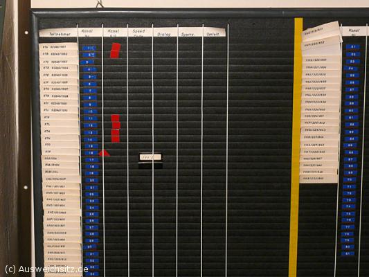 Zurückgelassen. Beschriftung für die Belegung von Leitungen im Postbunker Staffel.