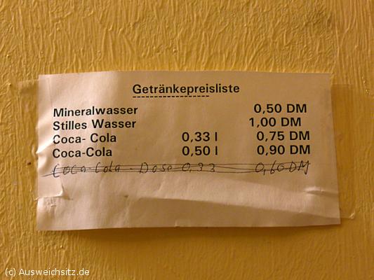 Hängengelassen. Übersicht zu den DM-Preisen für Kaltgetränke.