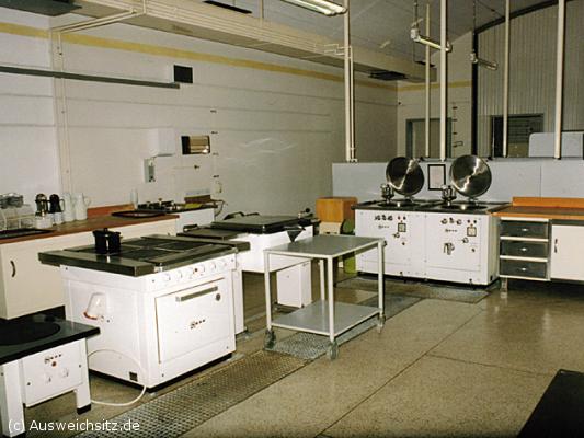 Großküche für 120 Bunkermenschen (1994). Den Zuschlag hier erhielt Einrichter Neff während im Regierungsbunker für 3.000 Menschen auf Küppersbuschküchen gekocht wurde.