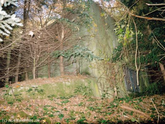 Von Bäumen erobert: Zuluftbauwerk des Postbunkers, dessen Lüftungskanäle mit der Schließung der Anlage mit Beton zugegossen wurden.