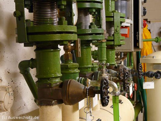 Gefederte Verbindung zwischen Vorratsbehälter und Leitungssystem im Bunker, die im Falle einer Schockwelle eine schwingende Wirkung haben sollte.