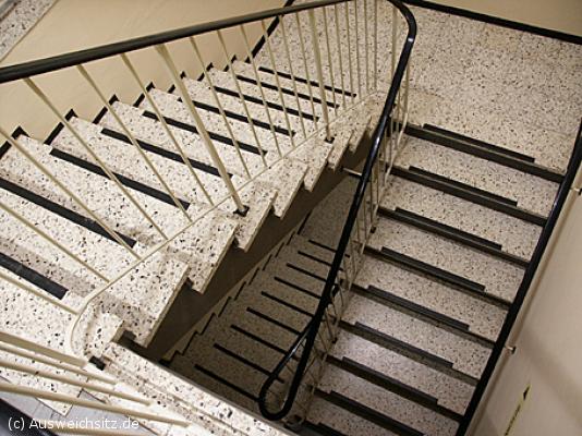 Abgang (Nummer 2): Das massiv gearbeitete Treppenhaus im Mittelpunkt der Anlage.