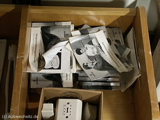 Es folgt Werbung. Auch einige Hundert dieser Siemens-Heftchen liegen bis heute im Bunker und werben für die moderne Technik (aus den 60er Jahren). Nebenbei erfüllen sie die damals gängigen Klischees von der allzeit bemühten und besorgten Sekretärin, die ihrem männlichen, telefonierenden Gegenüber alle Dienste abnimmt. Ein Bild, dass es hier nicht gegeben hätte, denn auf Frauenbesuch war dieser Bunker nicht vorbereitet.